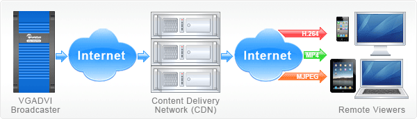 CDN的全稱是Content Delivery Network,即內容分發網絡,也叫網絡加速器。其基本思路是盡可能避開互聯網上有可能影響數據傳輸速度和穩定性的瓶頸和環節,使內容傳輸的更快、更穩定。VGADVI Broadcaster提供了多種方式與世界分享拍攝的視頻和支持CDN的即開即用功能。如StreamZilla和StreamGuys。