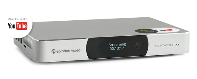 使用Epiphan Webcaster X1?將您的高清攝像機流式傳輸到YouTube。 可與任何攝像機,混音器或其它具有HDMI?輸出的設備配合使用。