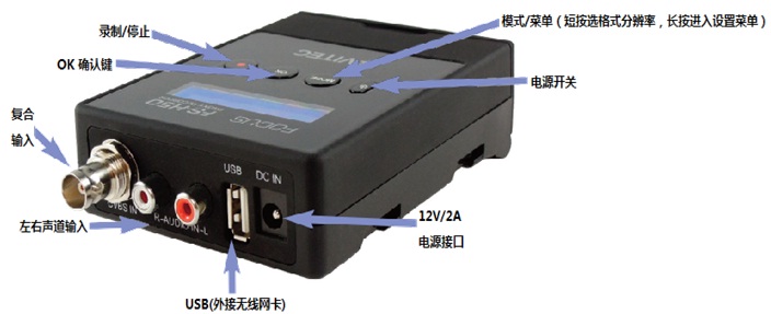 OK確認(rèn)鍵短按抓單幀;長按顯示電量、輸入分辨率、日期時間