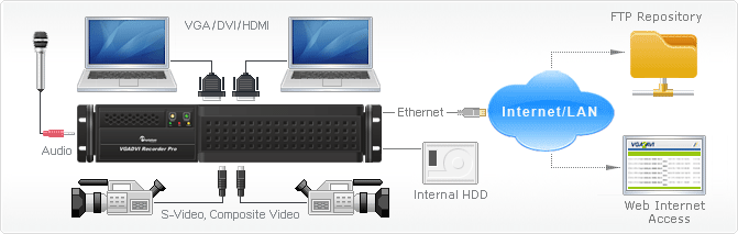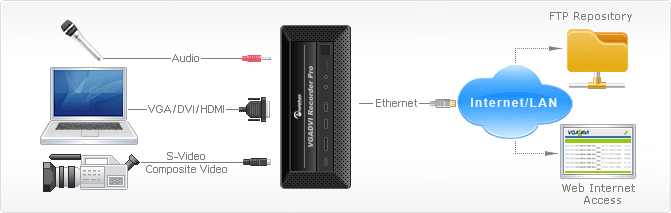 錄制設備或系統接收顯示源后編碼,并用不同的比特率和編碼選項記錄在本地存儲為AVI或MOV文件。這些記錄可以從內置WEB服務器中被找到或自動推到網絡存儲位置。