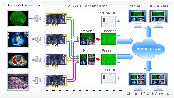 以下程序關系圖展示了與不同類型的幀采集器,視頻源類型連接到主機采集的各種顯示記錄解決方案。