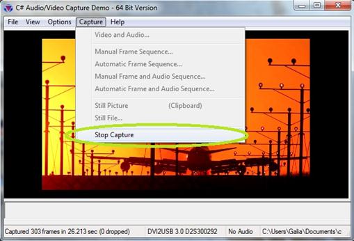 在多媒體捕獲工具的用戶界面中的Caputer選項下單擊Stop Capture停止捕獲。