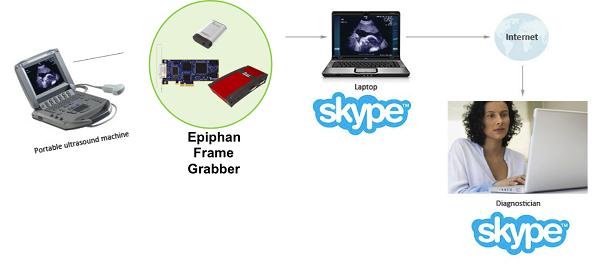 下圖顯示了超聲波機器的VGA輸出可以被注入和流傳輸到Skype視頻電話會議