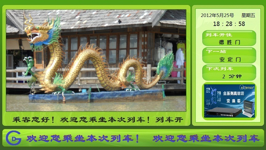 播放控制器主要是接收中心控制服務(wù)器發(fā)布的信息,然后顯示到前端設(shè)備上。首先將前端設(shè)備如大型液晶電視放置在車站的幾個(gè)全理位置,通過(guò)VGA或HDMI等線覽將播放控制器的屏幕顯示畫(huà)面輸出到電視上。在車站候車的乘客或是樓宇內(nèi)等候乘電梯客戶和大型商場(chǎng)購(gòu)物者們,就可以通過(guò)前端設(shè)備實(shí)時(shí)看到一些信息,如:視頻節(jié)目、時(shí)間、日期、到站名、下次列車進(jìn)站倒計(jì)時(shí)或搶購(gòu)倒計(jì)時(shí)、廣告幻燈片、滾動(dòng)字幕信息等。