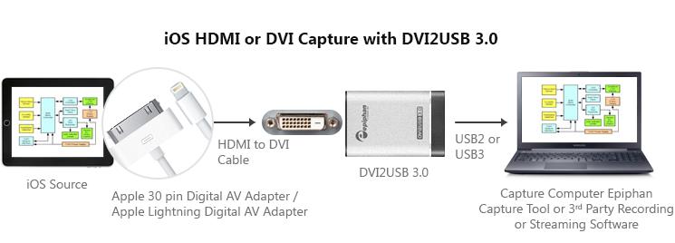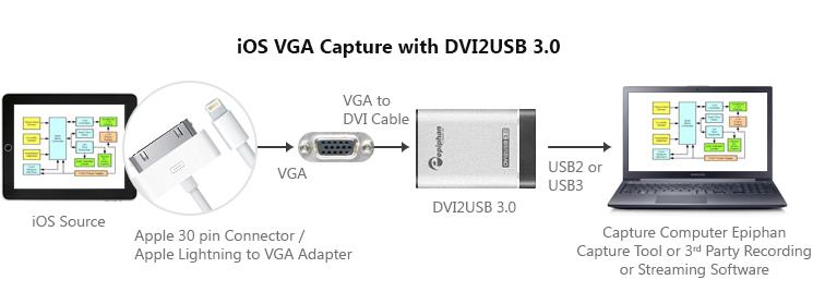 i Pad、iPhone和其他iOS設備已成為一種常見的業(yè)務工具,也廣泛應用于互聯(lián)網、游戲和媒體。這些設備支持視頻分辨率高達1920 x1080。iPad和iPhone應用程序現(xiàn)在可以利用大屏顯示和先進的功能。.例如,您可能想要記錄一個會話顯示某人如何瀏覽網頁,或如何使用你的新開發(fā)的應用程序,或者您可能想要記錄翻看你的照片,玩自己的幻燈片,或者創(chuàng)建一個播客視頻直播。您現(xiàn)在可以記錄和保留所有你看到iOS屏幕上的東西,以備后用。Epiphan DVI2USB 3.0可以快速、輕松地從你的iPad,iPhone或其他iOS設備捕獲分辨率極高的視頻和圖像