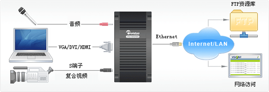 若想用一種全新的解決方案,也可采用Epiphan的便攜式采集系統VGADVIRecorder,此設備可以同時支持一個VGA/DVI/HDMI信號和AV復合或S端子信號,并且本身帶有32G存儲,還可進行網絡的傳輸。